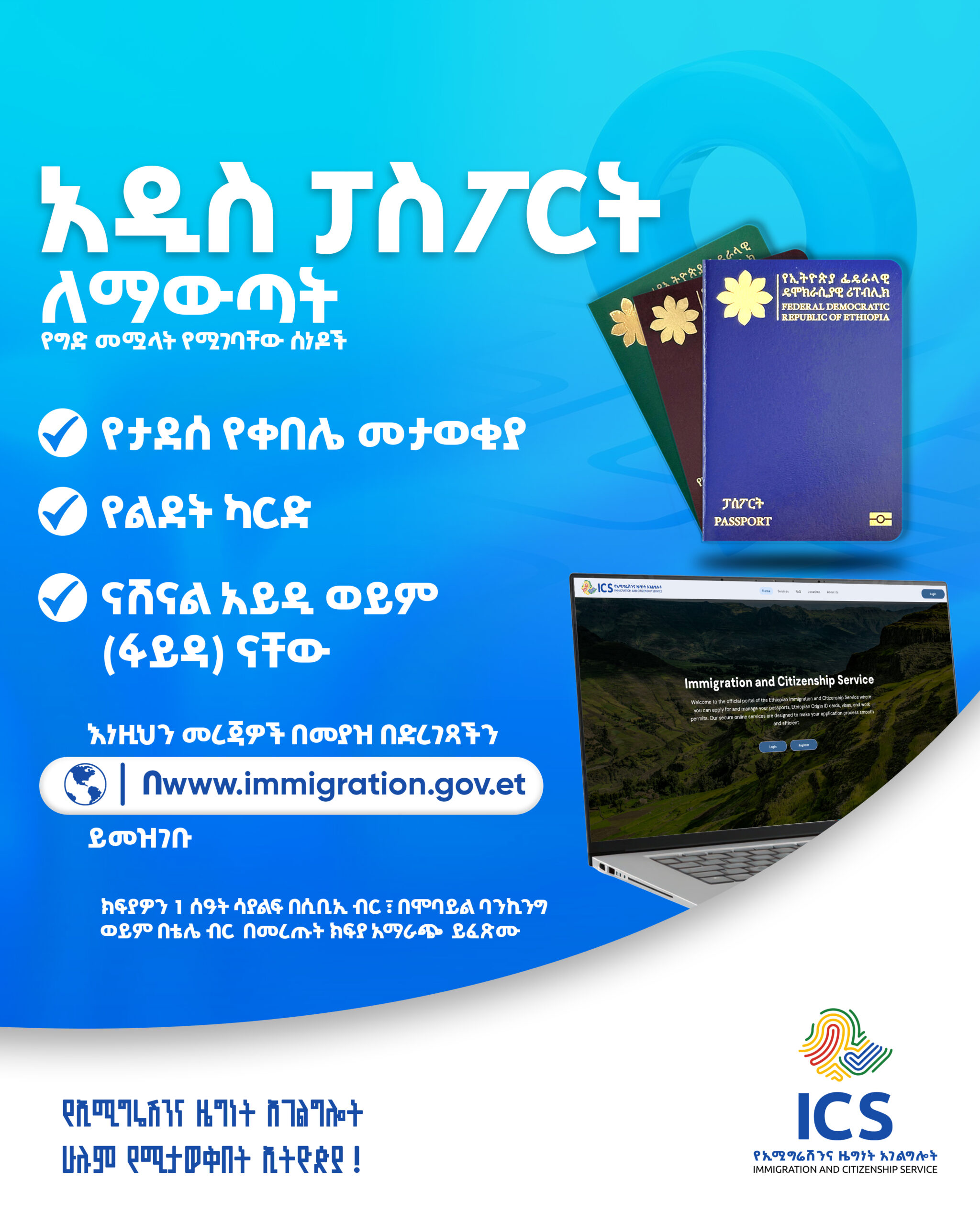 Welcome to the Ethiopian Immigration and Citizenship Services’ website. As the Director General, I am proud to share the significant strides we have made in transforming our services to better serve you.