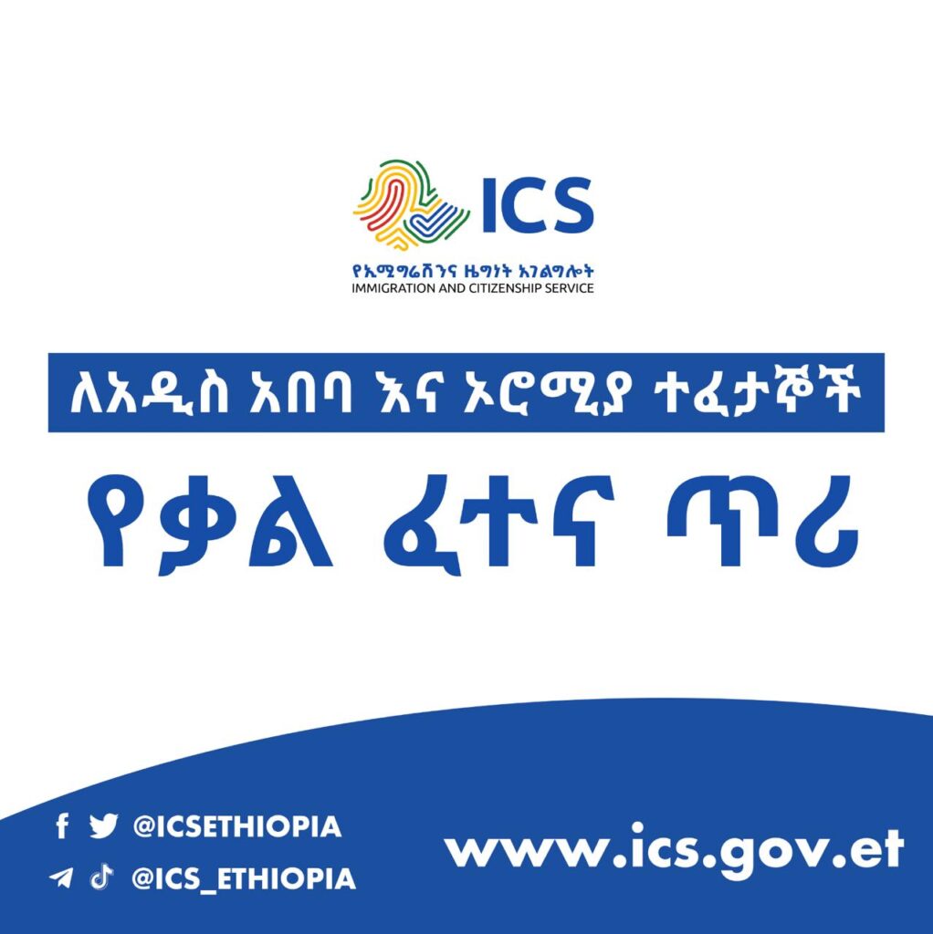 ስለሆነም ለአዲስ አበባ እና ኦሮሚያ ተፈታኞች ከመጋቢት 26 – 28/2017 ዓ.ም የቃል ፈተና የሚሰጥ ስለሆነ ማንነታችሁን የሚገልጽ መታወቂያ በመያዝ ጎተራ በሚገኘው ቢሯችን እንድትገኙ እናሳስባለን።