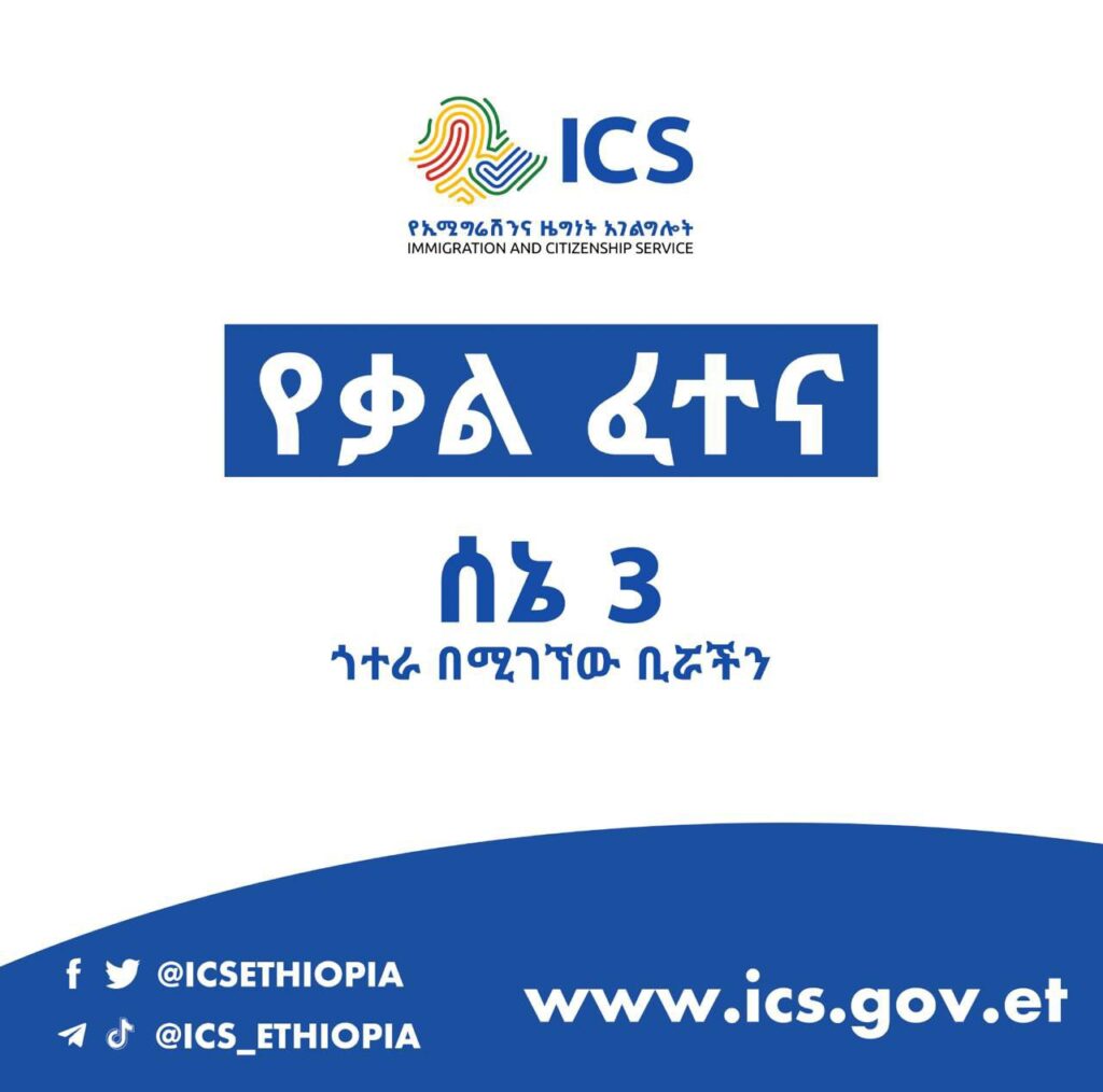 በኢሚግሬሽንና ዜግነት አገልግሎት ከሁሉም ክልሎችና ከተማ አስተዳደሮች መጋቢት 14/2017 ዓ. ም የተሠጠውን የፅሁፍ ፈተና ለወሠዳችሁ አመልካቾች በሙሉ፡-