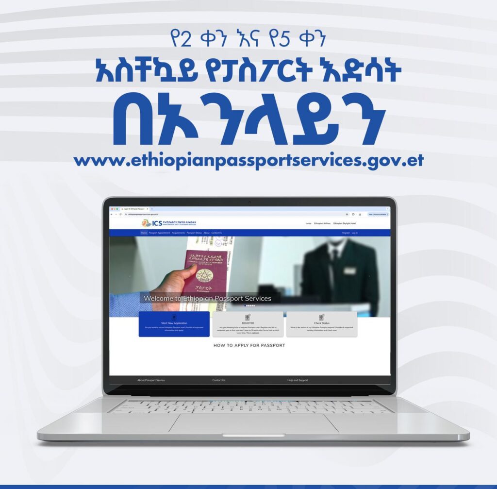 አስቸኳይ የፓስፖርት እድሳት ዋናው ቢሮ በአካል መምጣት ሳይጠበቅባችሁ በ www.ethiopianpassportservices.gov.et