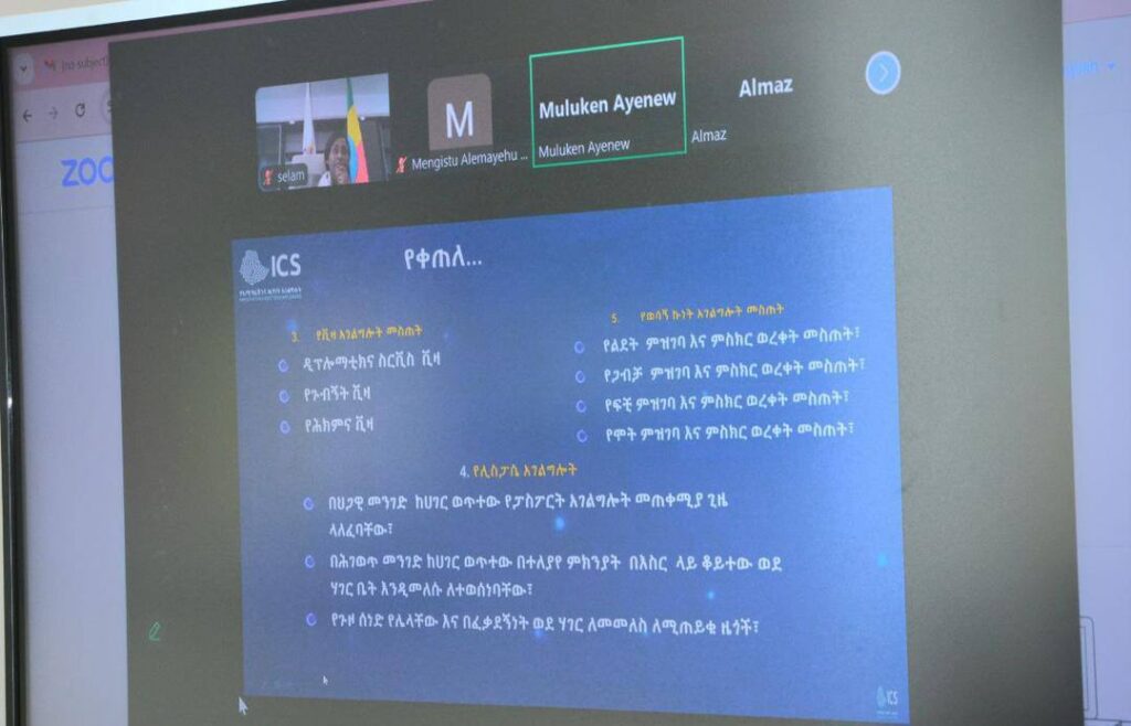 የኢሚግሬሽንና ዜግነት አገልግሎት የስራ ሃላፊዎች ከመካከለኛው ምስራቅ እና የአፍሪካ ሀገራት ከሚገኙ የሚሲዮን መሪዎች፣ አምባሳደሮች እና የኢሚግሬሽን ሰራተኞች ጋር በተቋሙ የሪፎርም ስራዎች ላይ  የበየነ-መረብ ውይይት አድርገዋል።