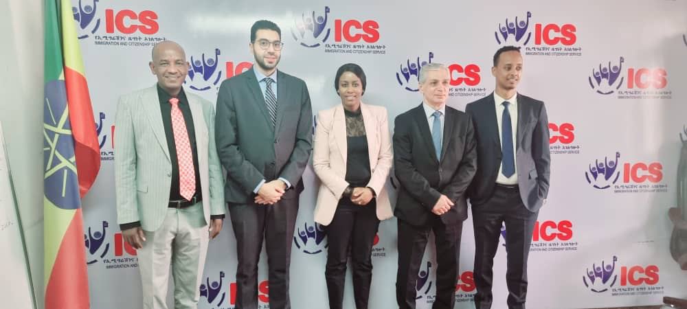የኢሚግሬሽን እና ዜግነት አገልግሎት ዋና ዳይሬክተር ክብርት ወ/ሮ ሰላማዊት ዳዊት የዓለም አቀፉን የሲቪል አቪዬሽን ድርጅት (ICAO) የኦዲት ቡድንን በጽሕፈት ቤታቸው ተቀብለው አነጋግረዋል። ዋና ዳይሬክተሯ በውይይታቸው፣ የኢትዮጲያ የኢሚግሬሽን እና ዜግነት አገልግሎት በተቋማዊ ሪፎርም ሂደት ላይ መሆኑን ጠቅሰዋል፡፡ የተቋሙን አገልግሎት ዓለም አቀፍ ደረጃውን በጠበቀ መልኩ ለማዘመንም፣ “የተለያዩ ማሻሻያዎች እየተከናወኑ ናቸው” ብለዋል፡፡