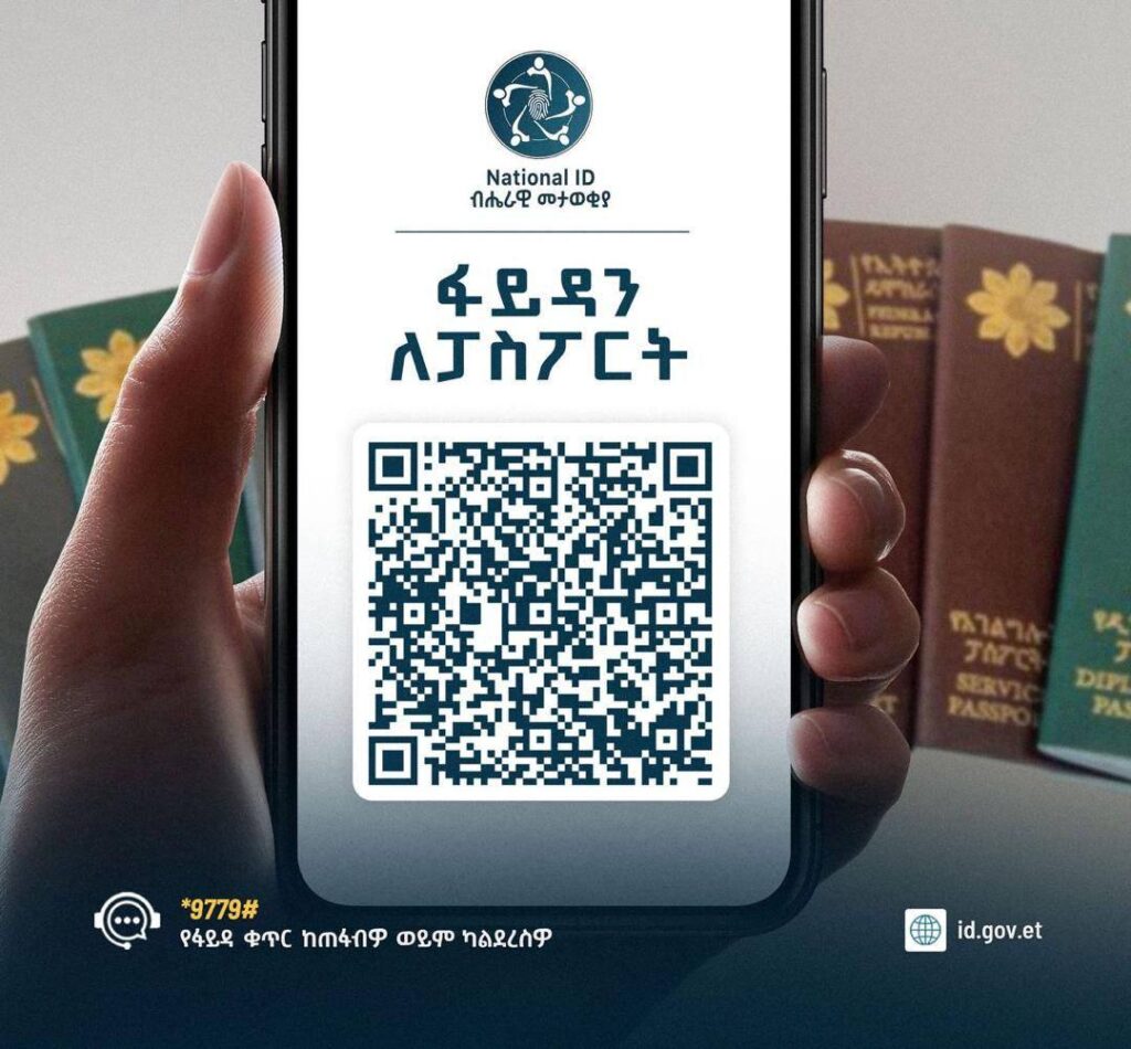 ይህም የጋራ ትግበራ የዲጅታል መታወቂያ ፕሮግራም እና የኢሚግሬሽን እና ዜግነት አገልግሎት ማንነትን በማጭበርበር የተለያዩ ሰነዶችን ለማግኘት የሚደረግን ጥረት ለመግታት የሚያስችል መሆኑን ታምኖበታል። በመሆኑም በተለያዩ የሀገሪቱ ክፍሎች የፓስፖርት አገልግሎት ጥያቄ አቅርበው በመጠባበቅ ላይ ያሉ ግለሰቦች ፓስፖርት ለመውሰድ ሲመጡ በቅድሚያ በፋይዳ ተመዝግበው ልዩ ቁጥር ሊኖራቸው የሚገባ ሲሆን ተገልጋዮች የፋይዳ መታወቂያቸውን በወረቀት መልክ አሳትመው ወይም ዲጂታል ኮፒውን ይዘው በስልካቸው ይዘው በመምጣት ብቻ አገልግሎት ማግኘት እንዲችሉ እናሳውቃለን፡፡ ተገልጋዮች በወረቀት ላይ የታተመ የፋይዳ QR ኮድ ወይም በስልካቸው የዲጂታል ኮፒውን ሲያቀርቡ የአገልግሎቱ ባለሞያዎች የመታወቂያውን ትክክለኛነት በመተግበሪያ በማረጋገጥ  አገልግሎት የሚሰጡ ይሆናል፡፡
