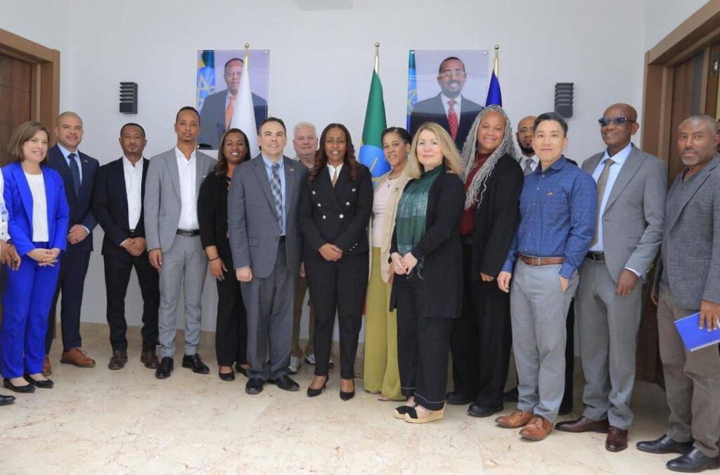 የኢሚግሬሽንና ዜግነት አገልግሎት ዋና ዳይሬክተር ወ/ሮ ሰላማዊት ዳዊት በአሜሪካ የPISCES ፕሮግራም መሪ ናታሊ ሲምፕሰን የተመራ ልዑካንን በጽ/ቤታቸው ተቀብለው ያነጋገሩ ሲሆን ኢትዬጵያ በአየርና በየብስ የድንበር ቁጥጥር ላይ እያከናወነች ያለችውን ተግባር እና በቀጣይ ከአሜሪካ ጋር በዘርፉ ያለን ትብብር ይበልጥ ለማጠናከር በሚቻልበት ሁኔታ ላይ ተወያይተዋል፡፡